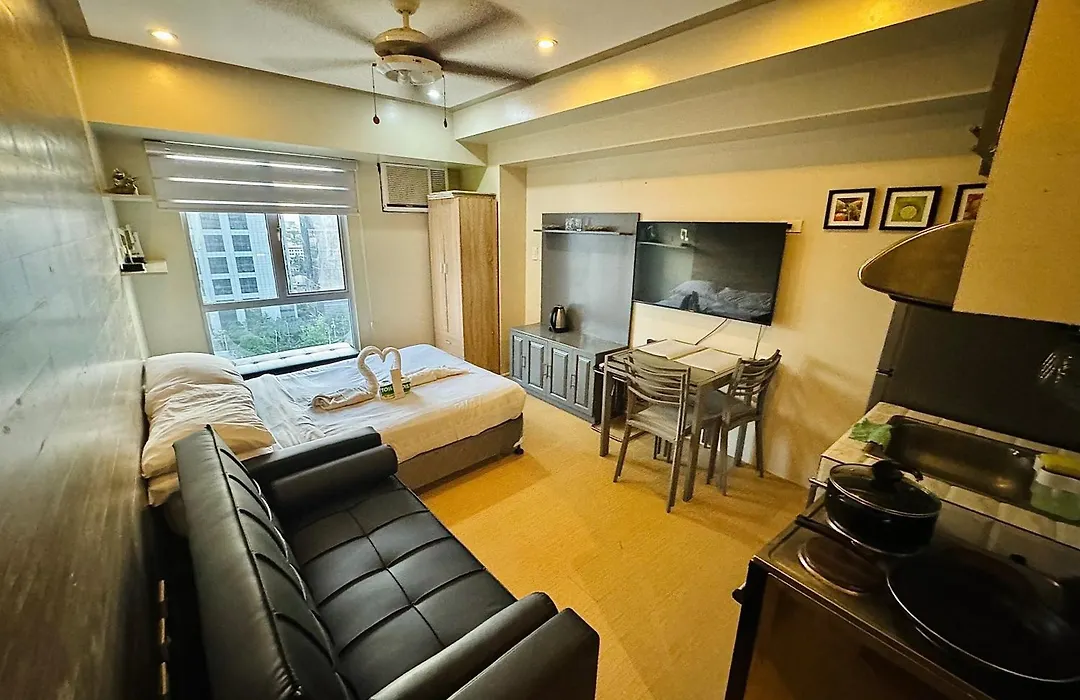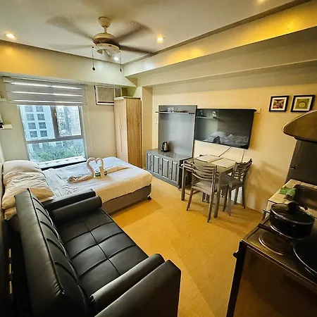 Outre une cafetière/théière, les équipements indépendants de la cuisine complète comprennent un micro-ondes et un réfrigérateur. Il est situé à moins de 200 mètres de l'arrêt de bus le plus proche, l'arrêt de bus to Ayala Mall. La disponibilité d'une piscine extérieure assure aux clients une détente ultime.